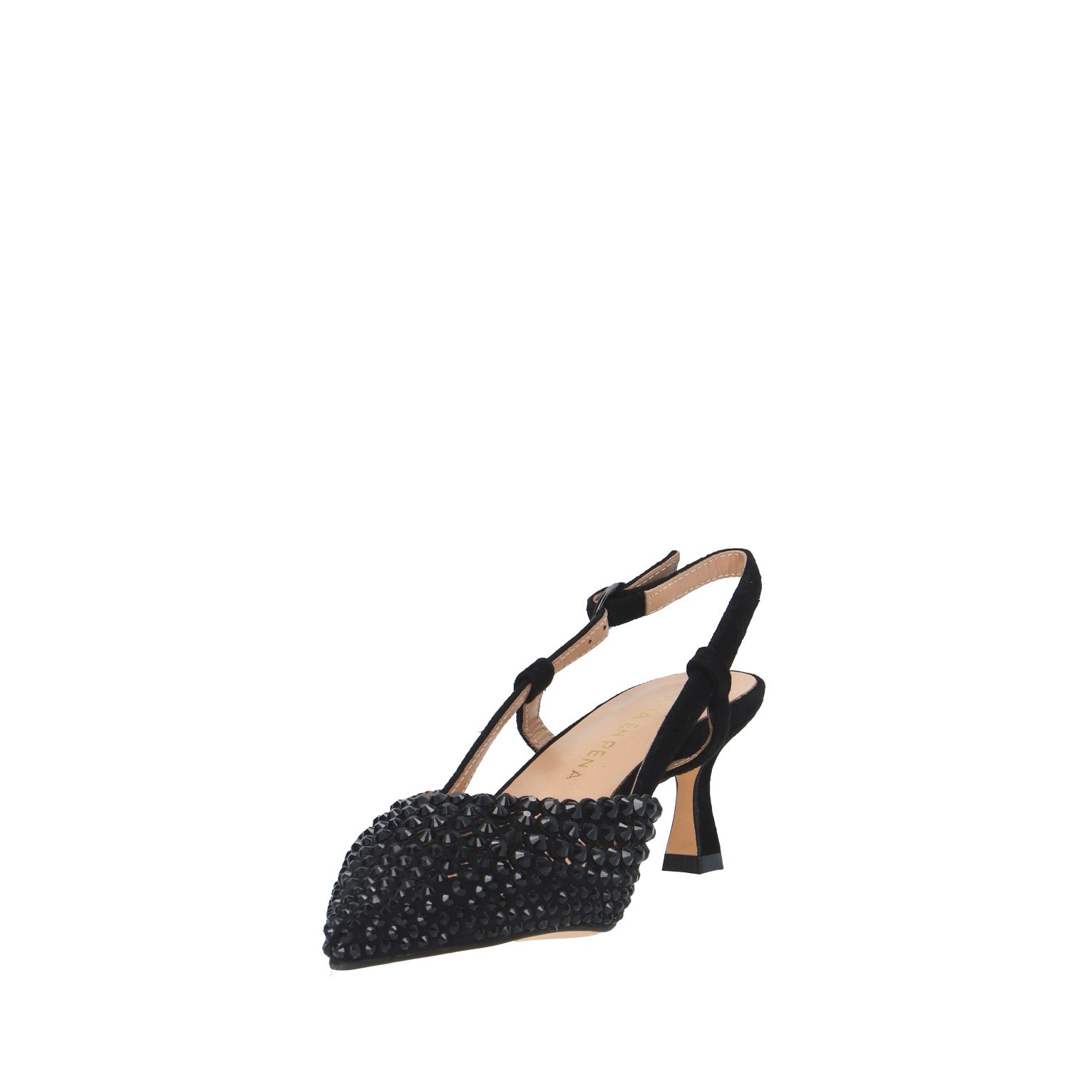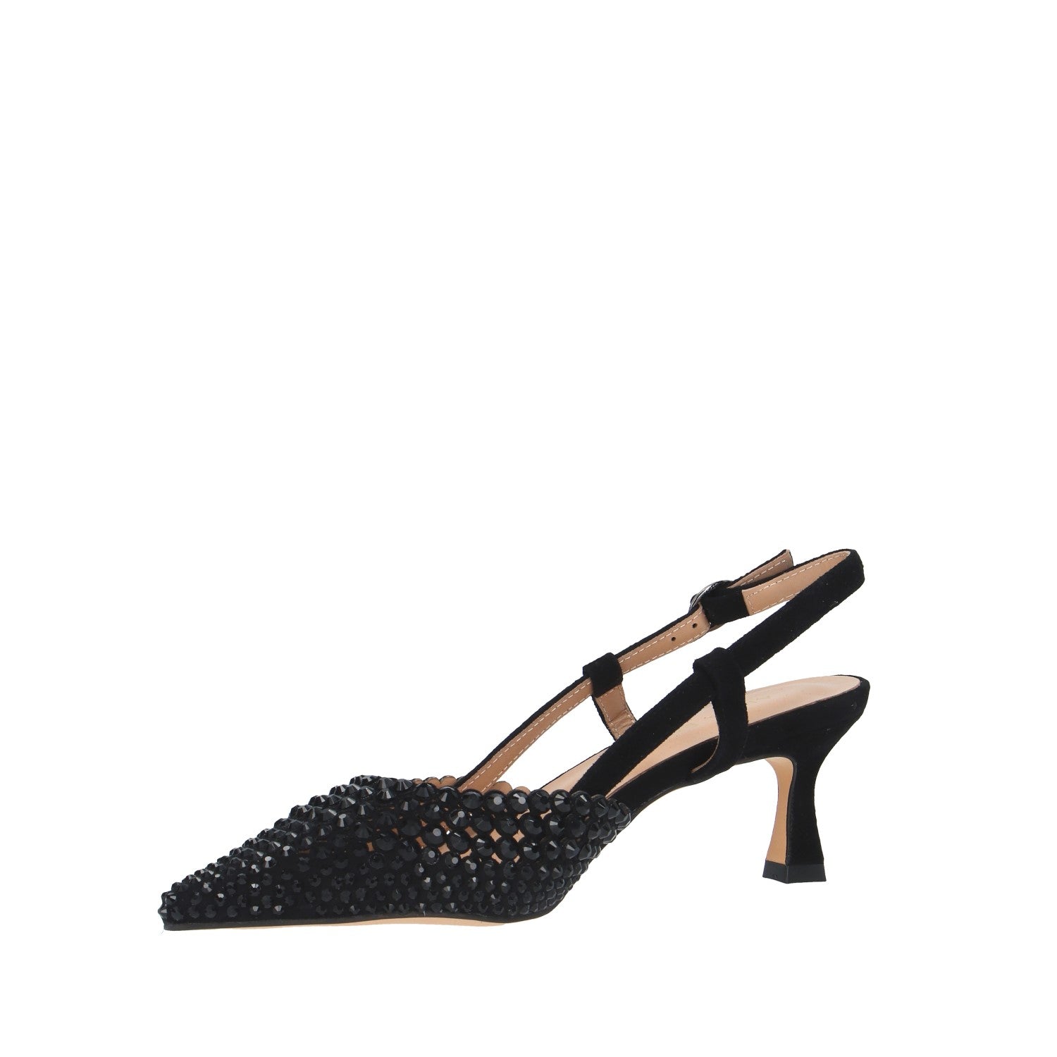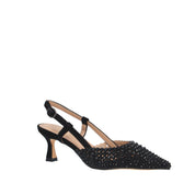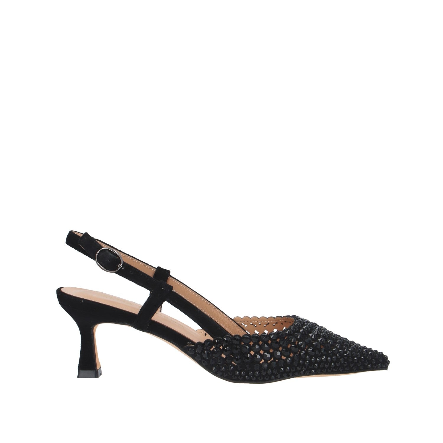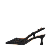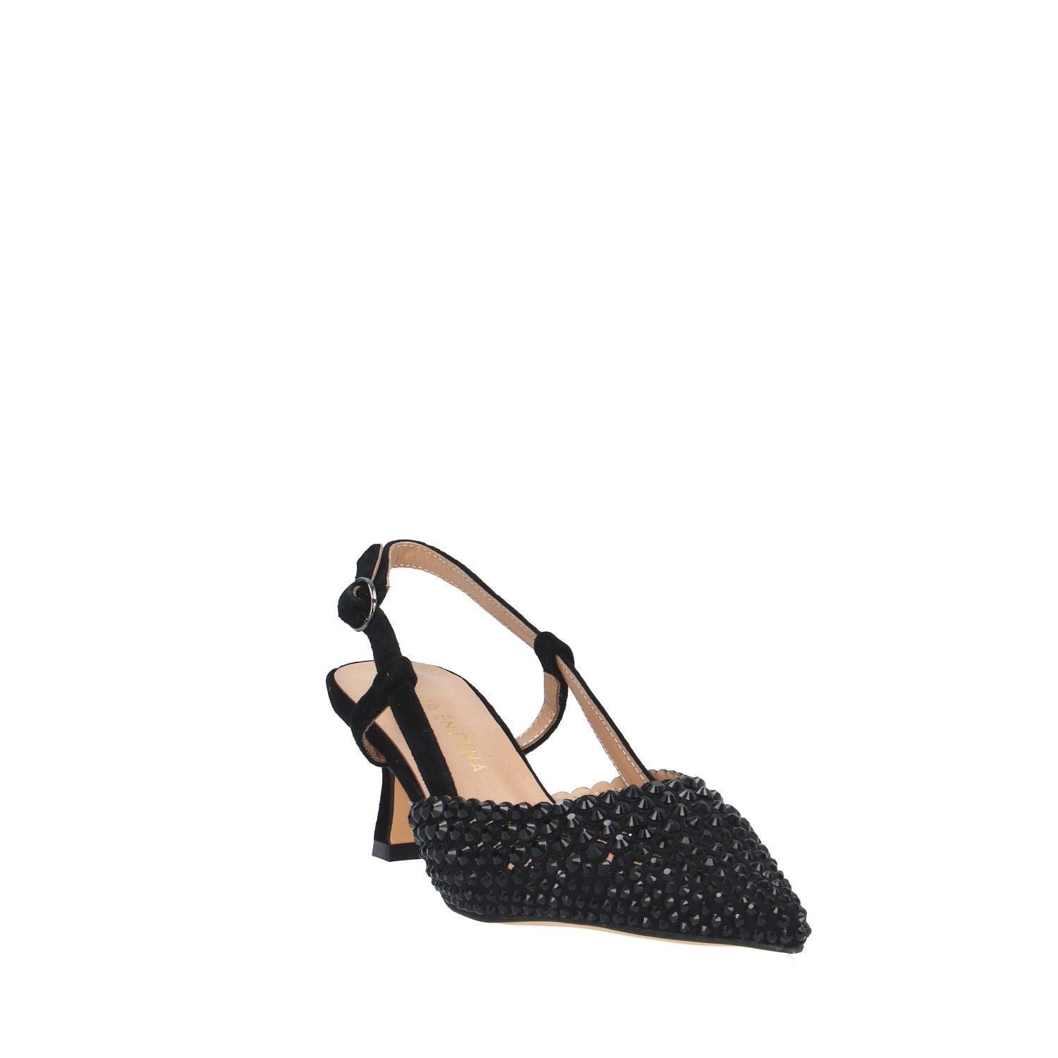 Materiale tomaia: tessuto ricoperto di pietre e tacco scamosciato;