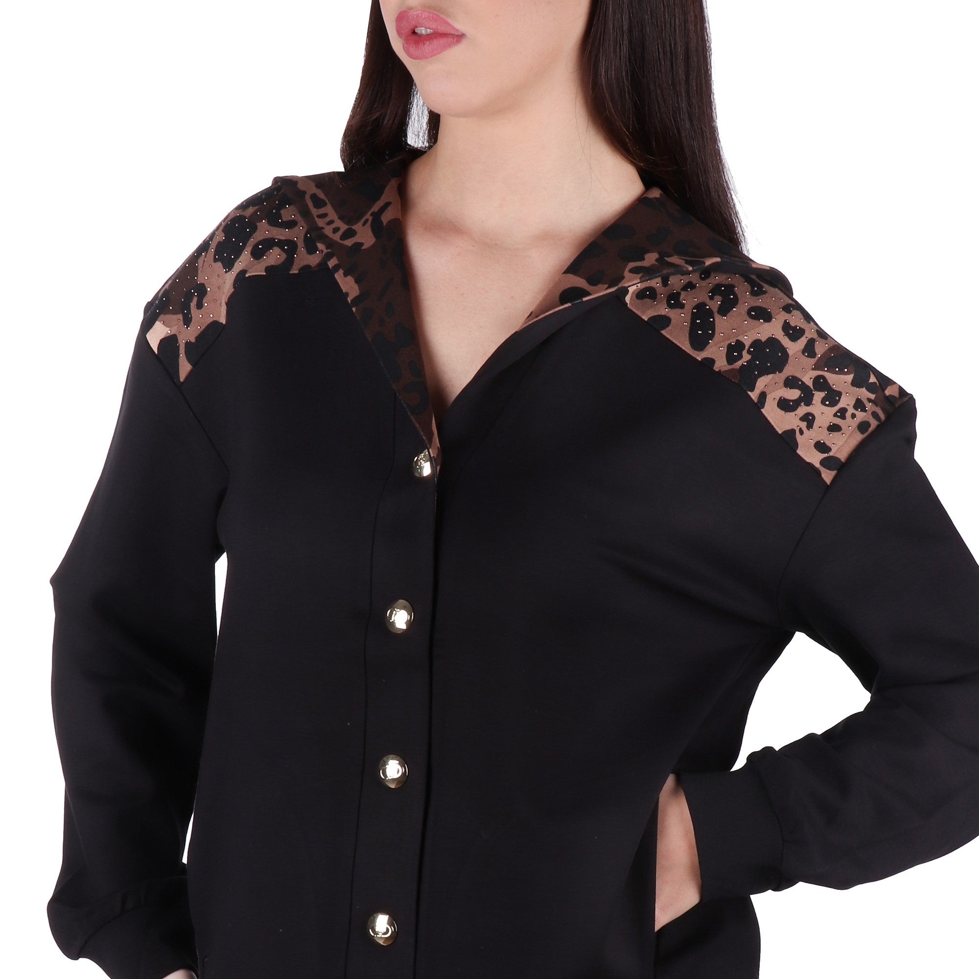 - Colore: Nero elegante e inserti animalier