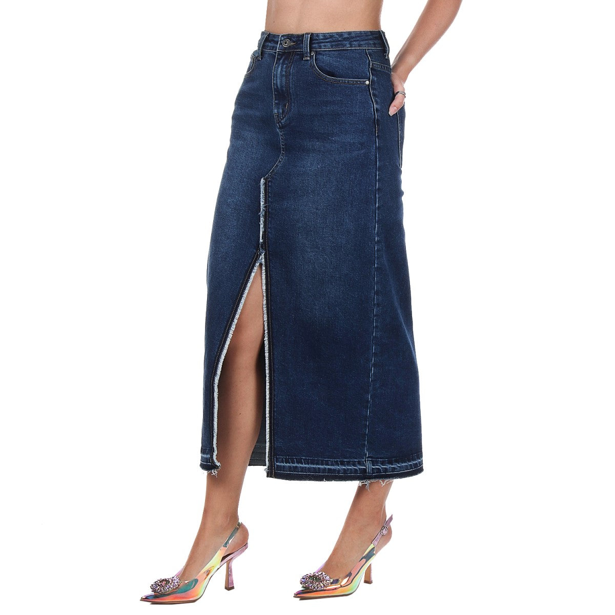 Modello: gonna longuette con spacco davanti;