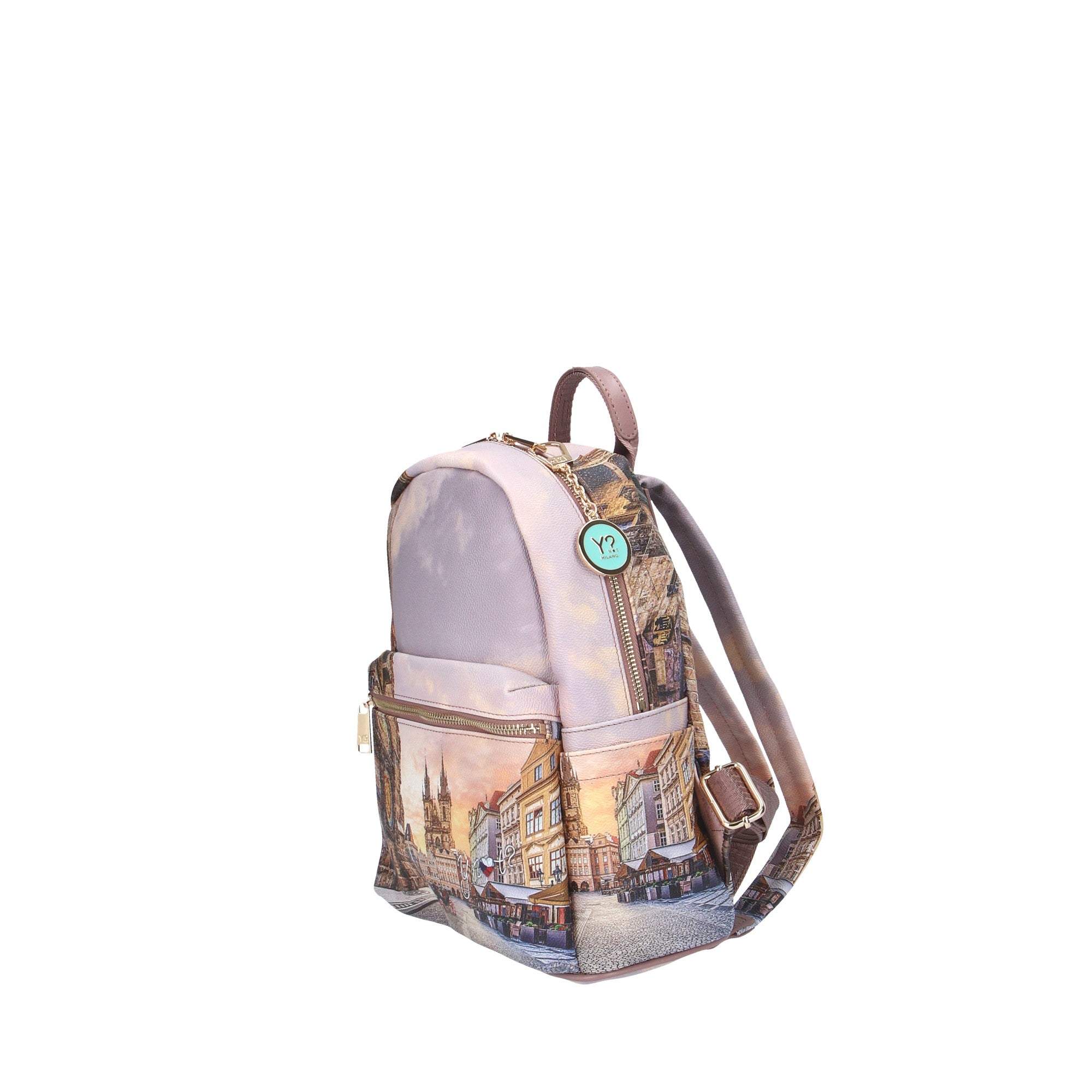Scopri lo Zainetto YNOT?, un accessorio fashion che unisce eleganza e praticità. Questo zaino, con il suo design unico e il paesaggio urbano dettagliato, è perfetto per chi ama distinguersi con stile.